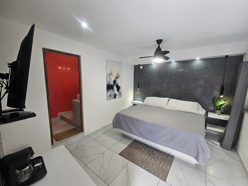 Traditional Palapa Bungalow privately located good size room with its own bath. Offers a full size bed, mountain view, very clean.